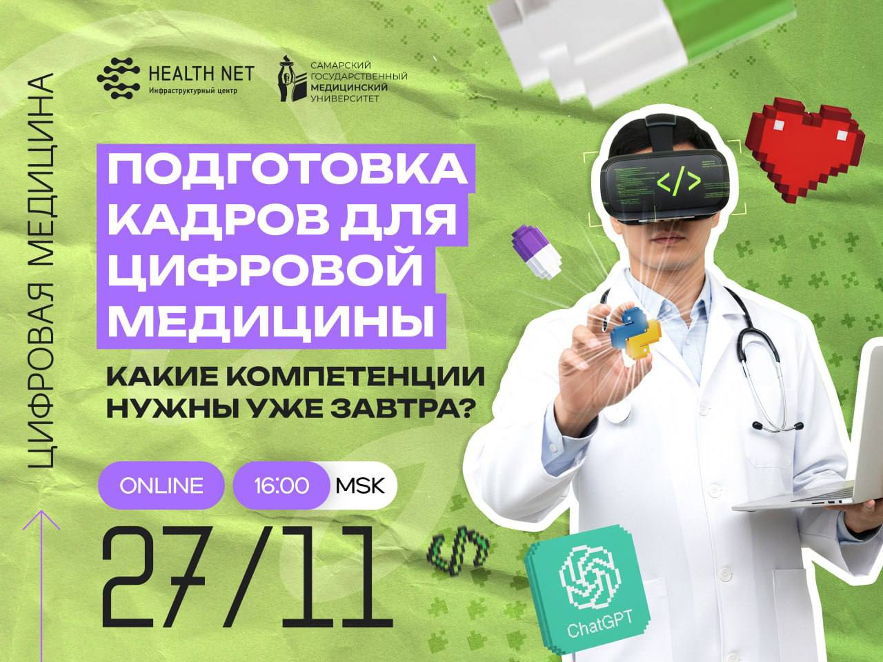 Приглашаем на онлайн-встречу клуба «Цифровая медицина»: Образование и подготовка кадров для цифровой медицины: какие компетенции нужны уже завтра?